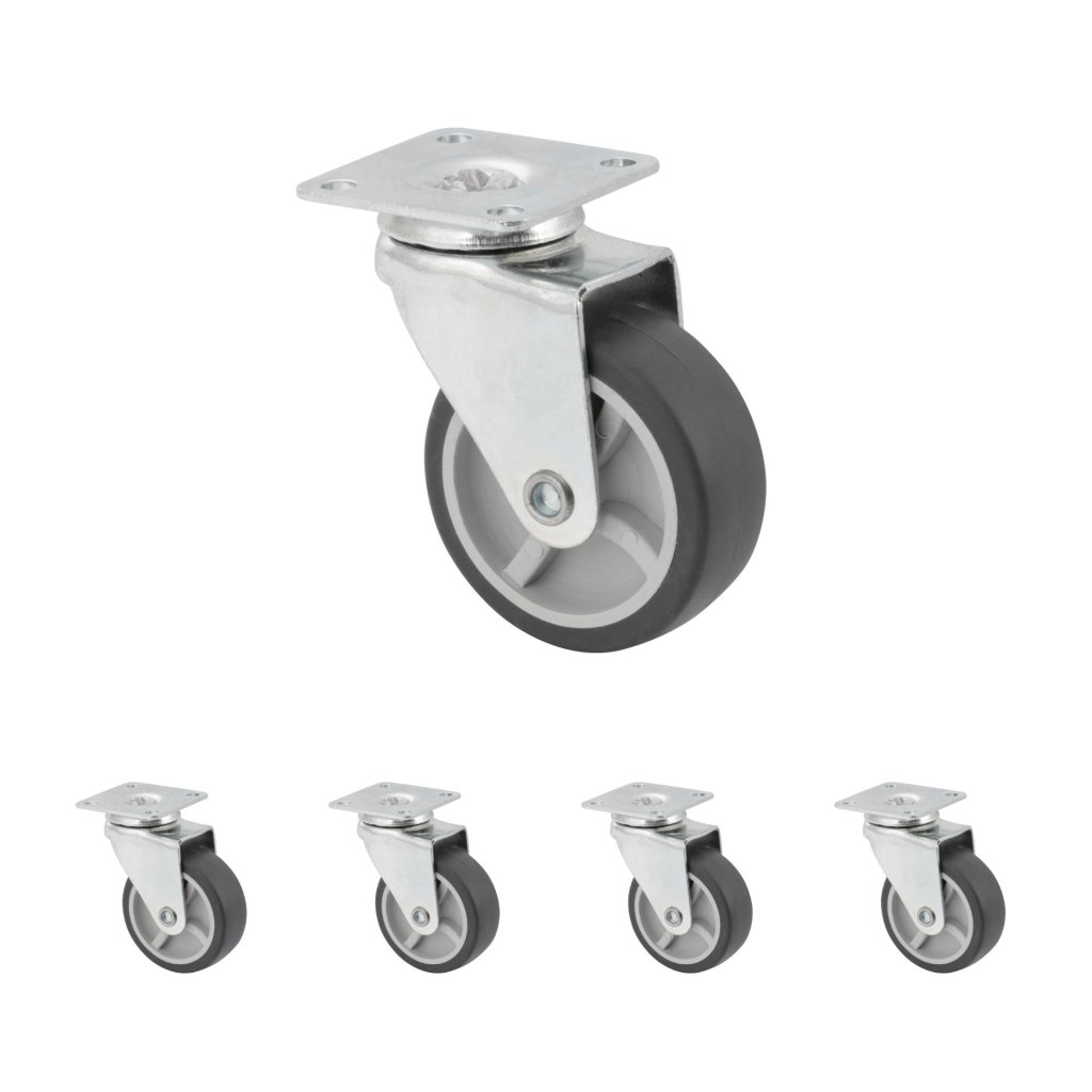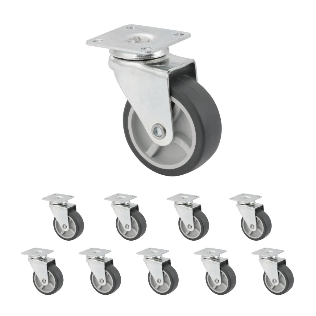 Přístrojové kolečko o průměru 50 mm s dynamickou nosností 40 kg. Kolečka pro tvrdé podlahy jako jsou dlažby, dřevěné plovoucí podlahy, průmyslové podlahy.