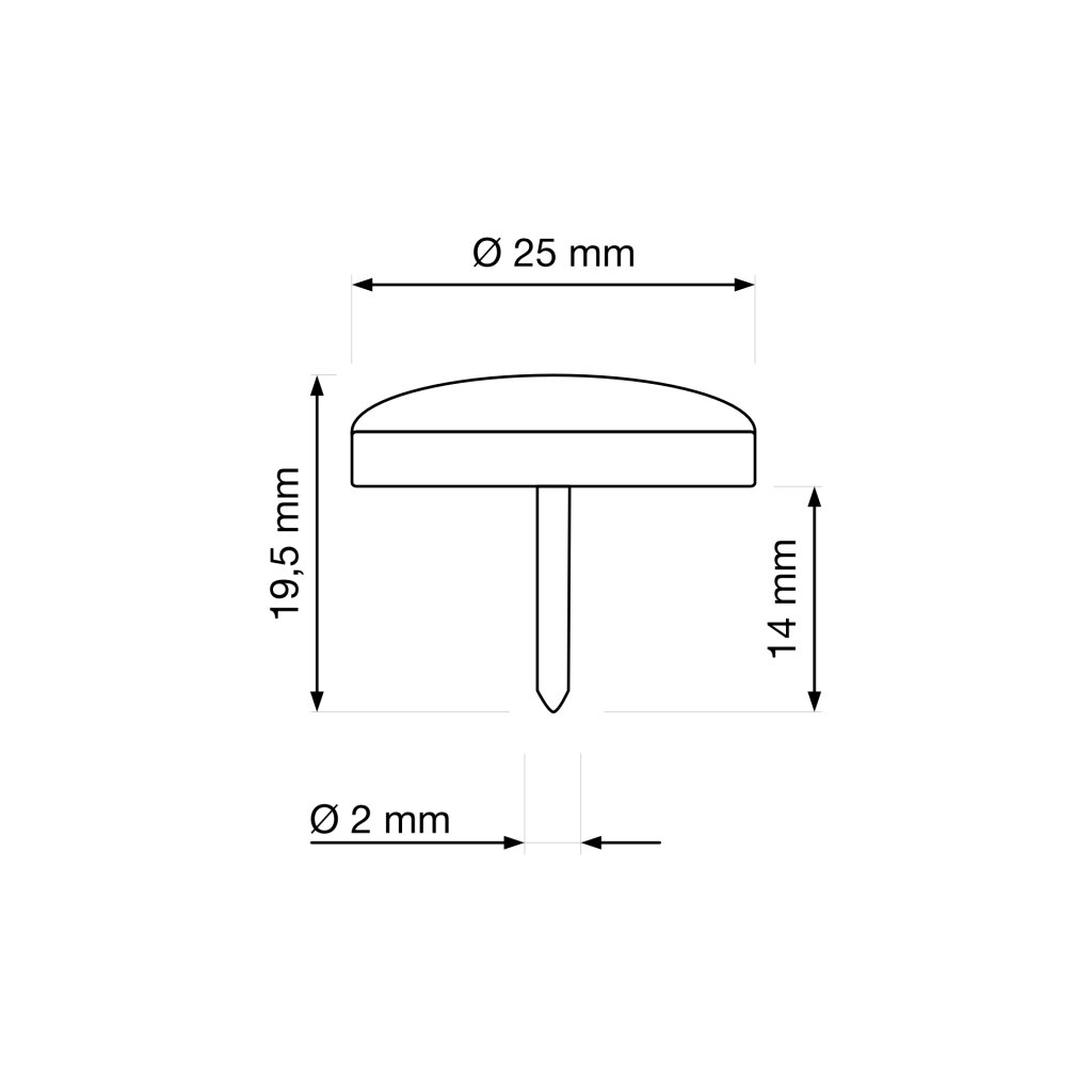 PTFE kluzák s hřebem, průměr 25mm, světle šedý, 8 ks