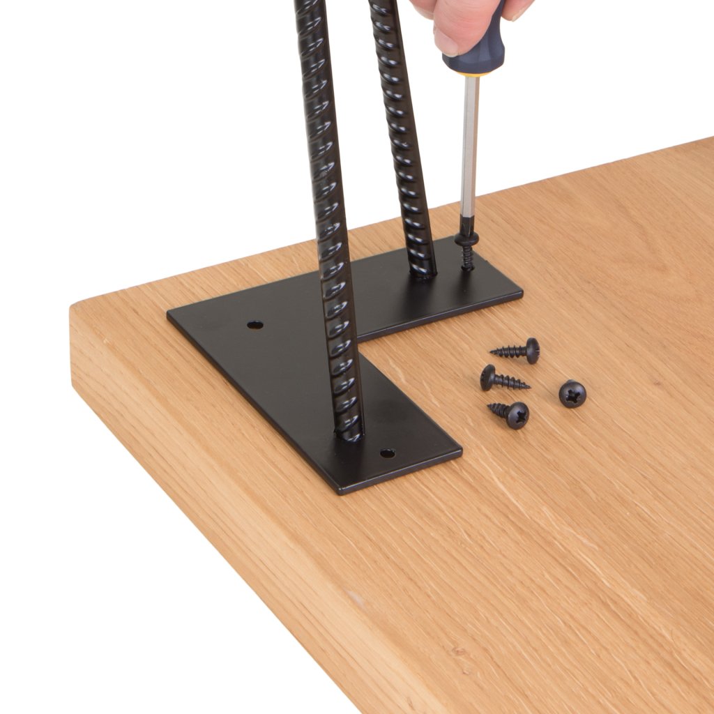 Ocelové Hairpin nohy jsou navržené tak, aby jejich montáž byla rychlá a snadná. Na montážní desce se nachází 3 předvrtané otvory, kterými pomocí šroubů a podložek nebo vrutů připevníte nohy k jakékoliv desce. Na nábytku si jen vyznačíte polohy děr, vyvrtáte je a přišroubujete.