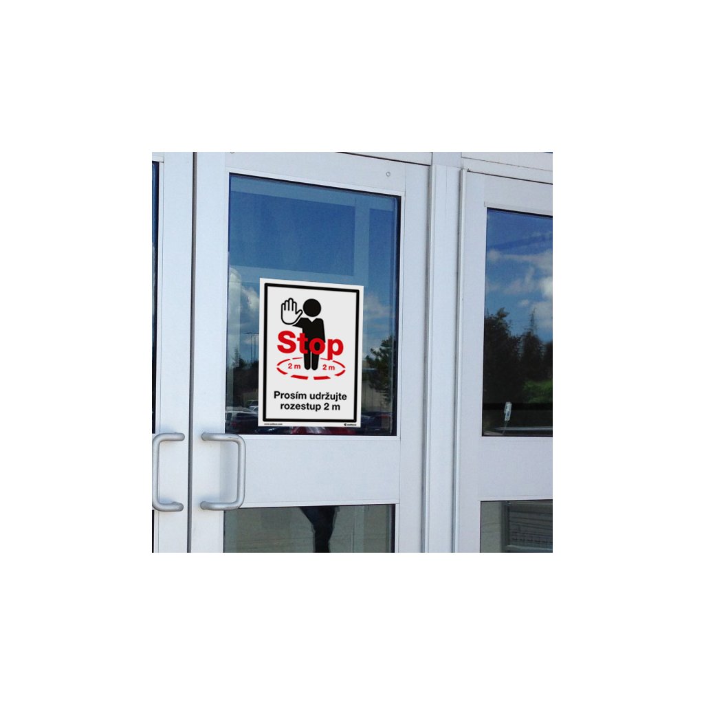 Samolepka "STOP - prosím udržujte rozestup 2 m", 210 × 297 mm, formát A4