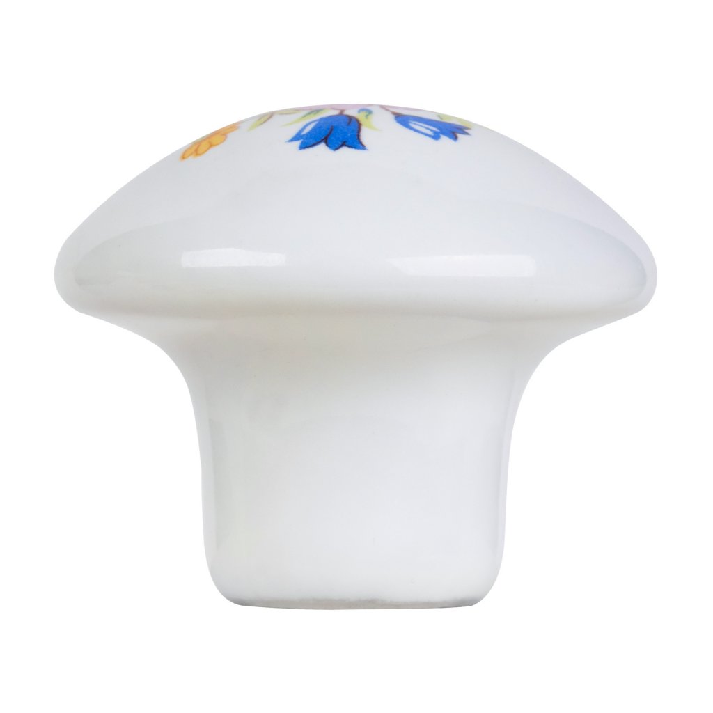 Set nábytkových knopek Kytice, průměr 35mm, porcelán, bílý, 4 ks