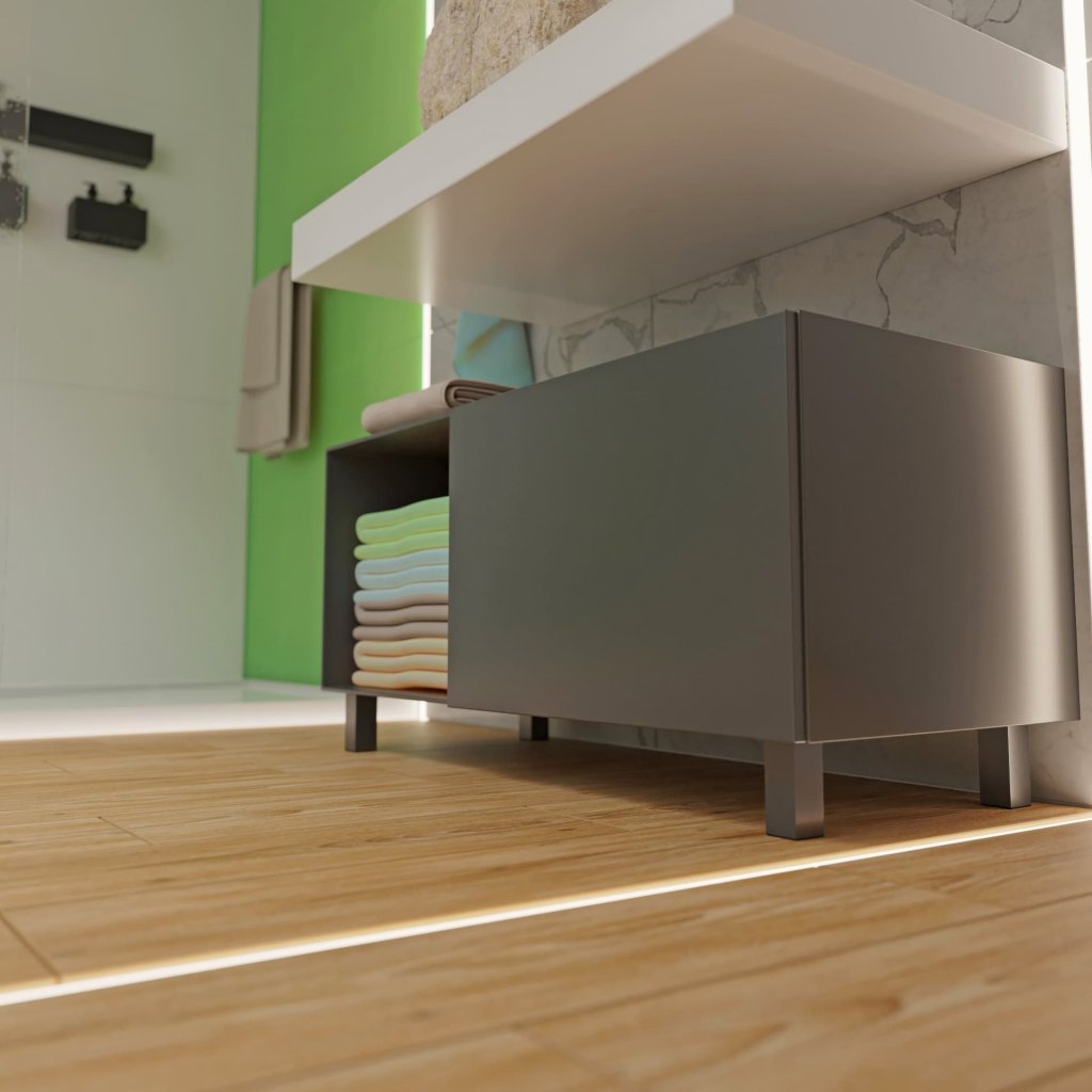 Na botníku vypadají moc pěkně. Nohy celkem pevné, ale bylo nutno je přišroubovat i v rozích skrz dutou nohu, jelikož při posouvání nábytku mají poté mírnou tendenci pružit. Na nohách chybí ochranný krycí lak, který by chránil hliníkovou barvu. Ta je matná a ve velmi slabé vrstvě, takže by se velmi lehce poškodila například vytíráním kolem noh. Po nástřiku akrylového laku již v pořádku. Celkově tedy v pohodě, jen je třeba dodělat si sám.