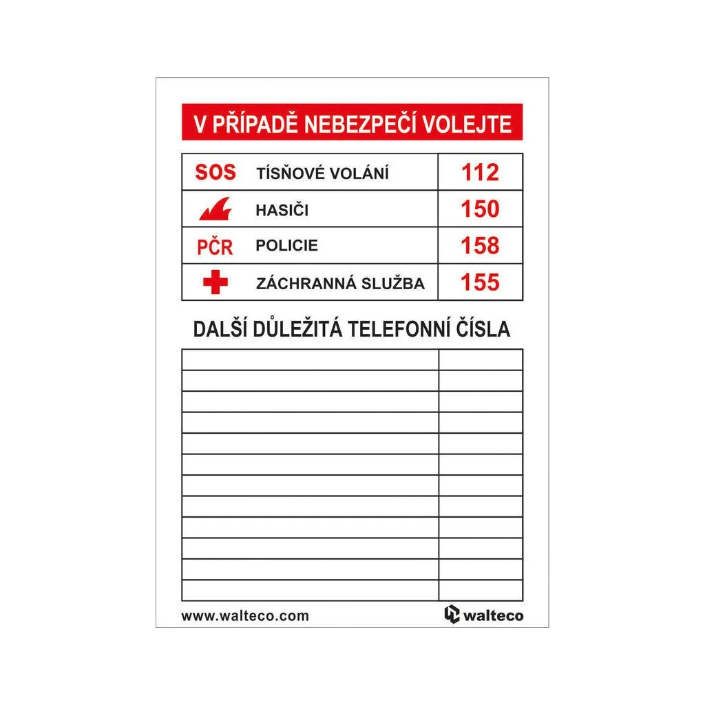 Dôležité telefónne čísla, 70x100mm, nálepka