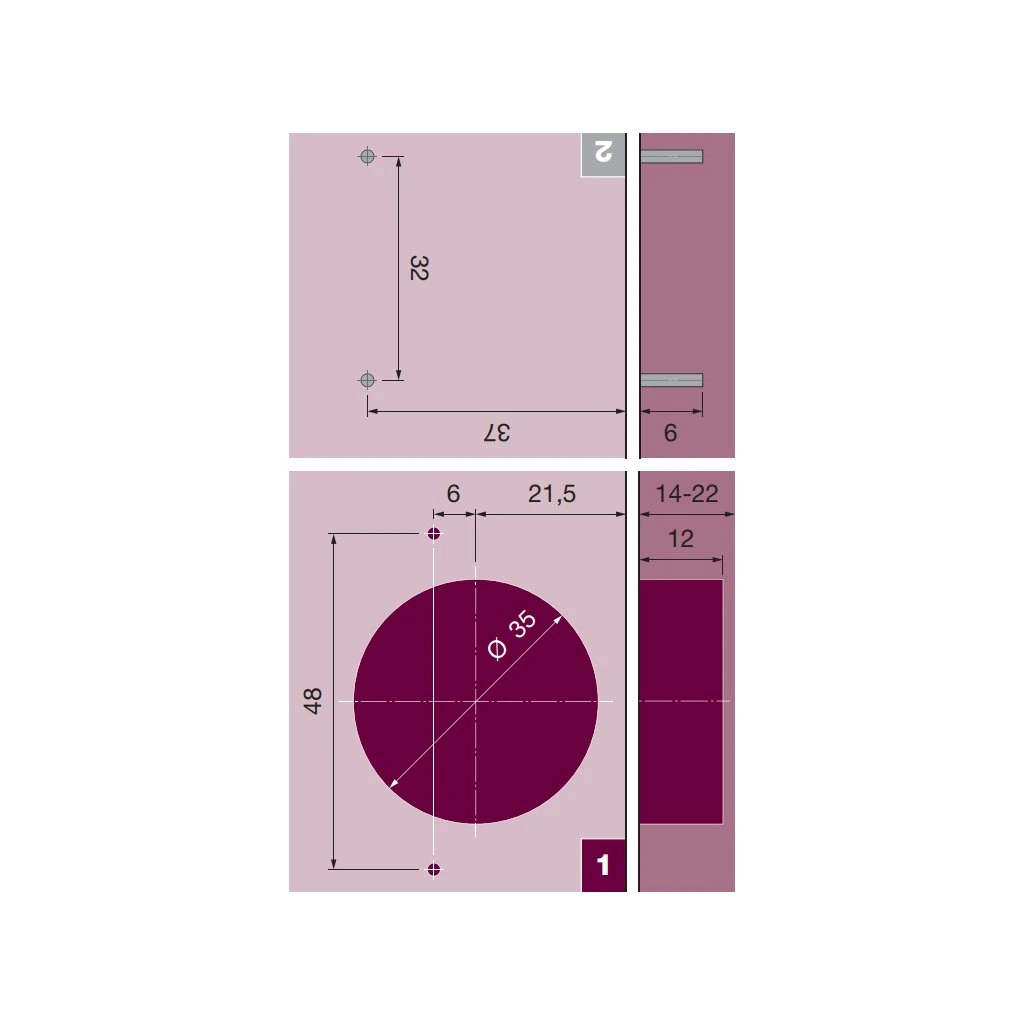 - Priemer misky 35 mm, hĺbka misky 12 mm