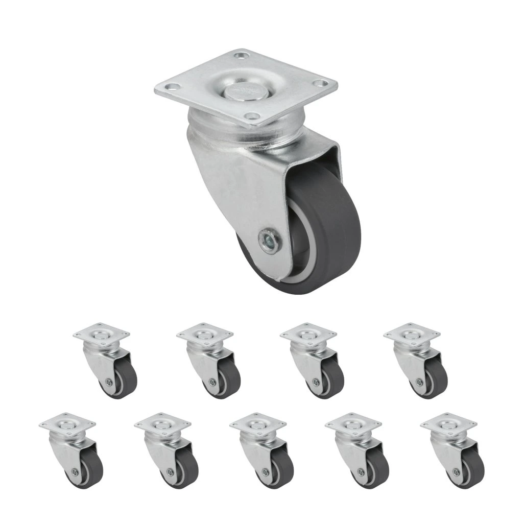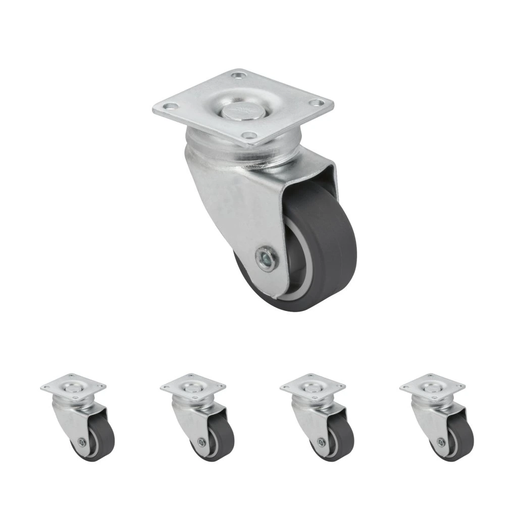Přístrojové kolečko o průměru 40 mm. Kolečka pro tvrdé podlahy jako jsou dlažby, dřevěné plovoucí podlahy, průmyslové podlahy.