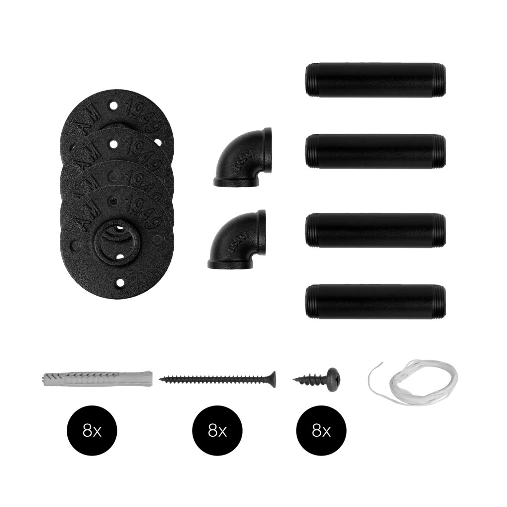 Komponenty sú vyrobené z pevnej ocele a povrchovo upravené práškovou farbou. Tá je odolná voči poškriabaniu, vode alebo čistiacim prostriedkom. Bez problémov môžete svoje výrobky využívať aj v kúpeľni alebo kuchyni. Rúry odolajú aj pazúrikom domácich miláčikov a svoj pútavý vzhľad v industriálnom duchu si zachovajú po dlhé roky.