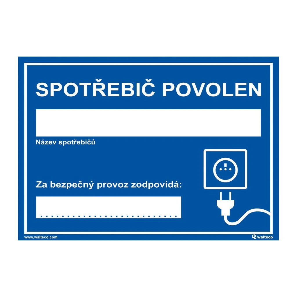 Slúži na upozornenie zamestnancov a návštevníkov na hroziace riziká v oblasti stroja. Na ceduľke je priestor na doplnenie názvu spotrebiča a podpisu zodpovednej osoby zodpovednej za jeho prevádzku.