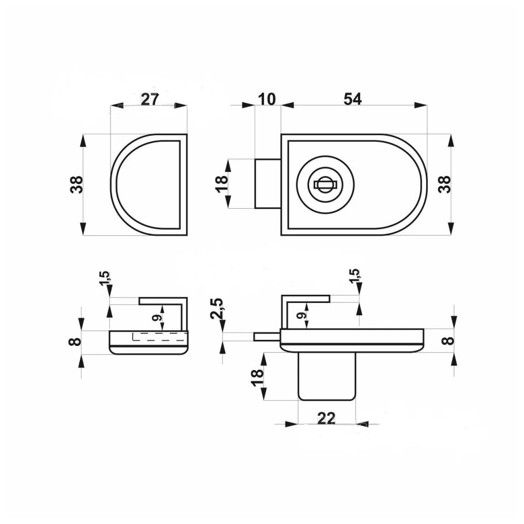 Zámok na sklo 27x38mm, chróm