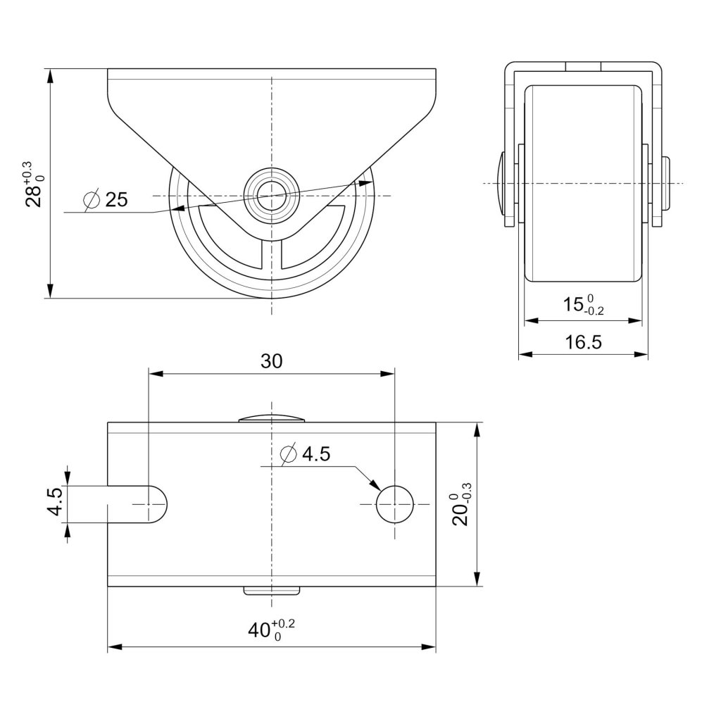 Skříňové kolečko o průměru 25 mm určené pro tvrdé podlahy. Kolečka pro tvrdé podlahy jako jsou dlažby, dřevěné plovoucí podlahy, průmyslové podlahy.