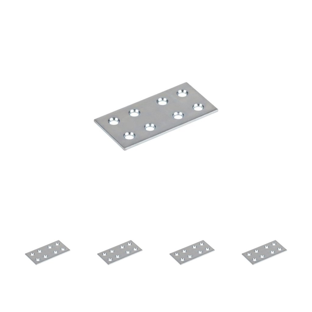 Spojovací plech vyrobený z oceli, oboustranně žárově zinkovaný o tloušťce 1,8 mm. Průměr montážních otvorů pro hřebíky nebo vruty je 4,5 mm.