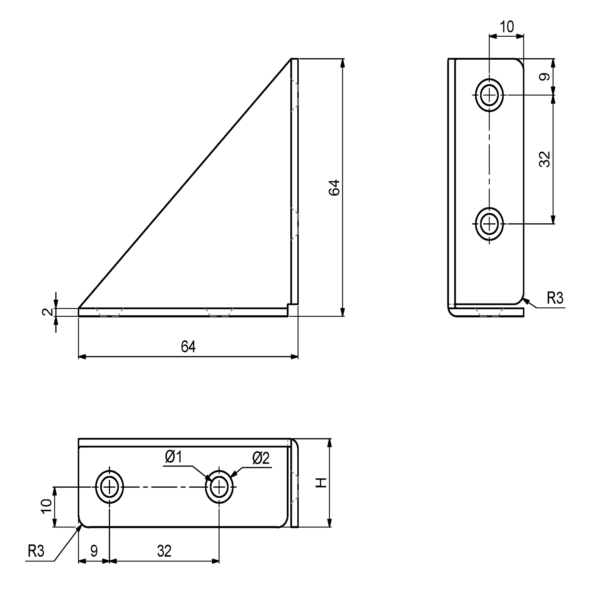 Spojovací rohovník 64x64x22mm, pozinkovaný