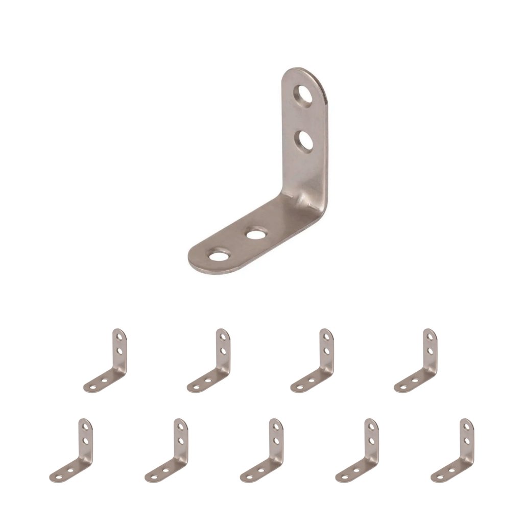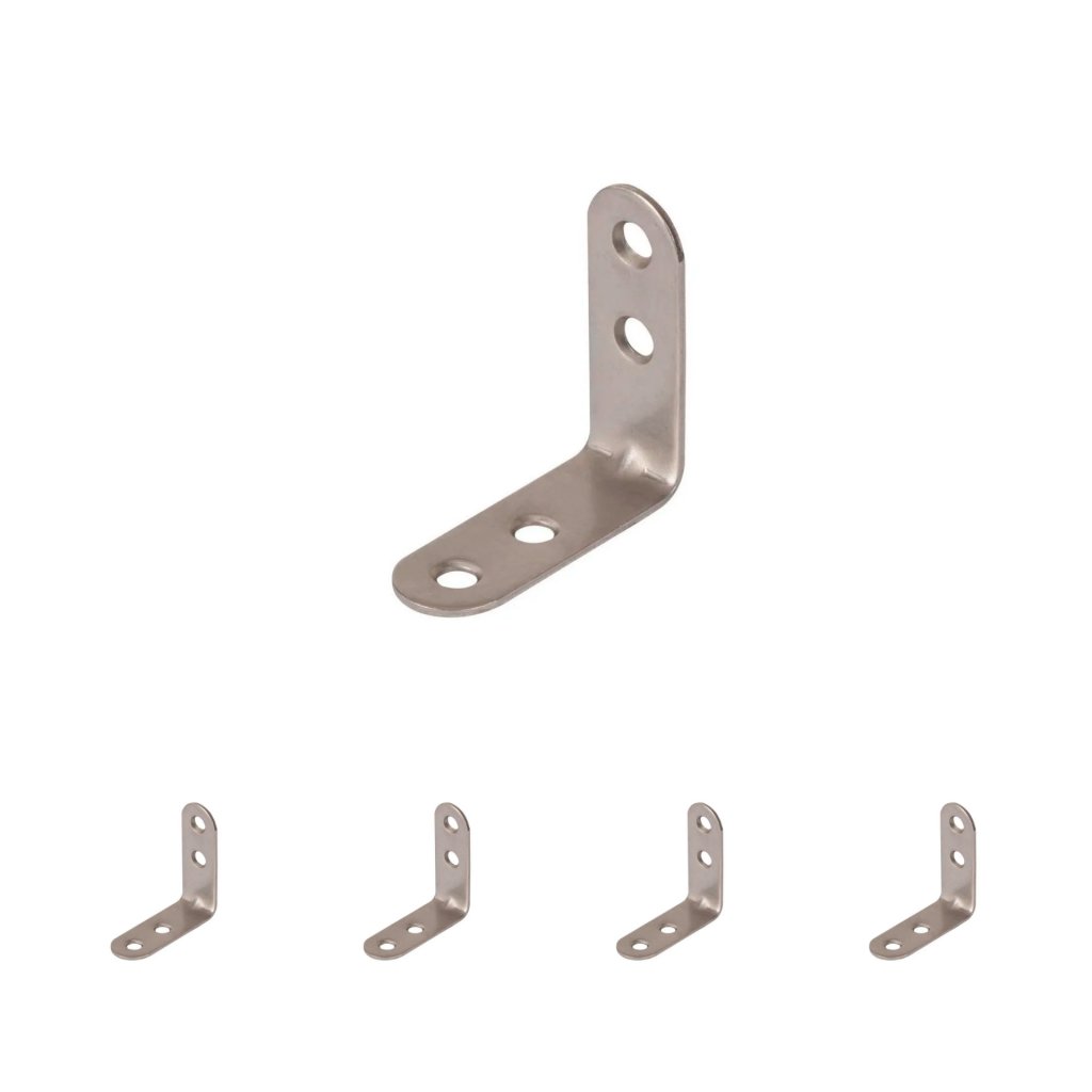 Spojovací úhelník vyrobený z nerezové oceli o tloušťce 1,5 mm. Průměr montážních otvorů pro hřebíky nebo vruty je 4,5 mm.