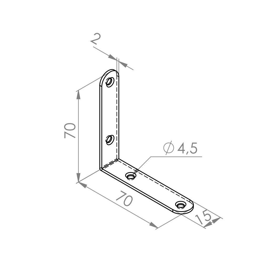 Spojovací úhelník vyrobený z oceli o tloušťce 2 mm.