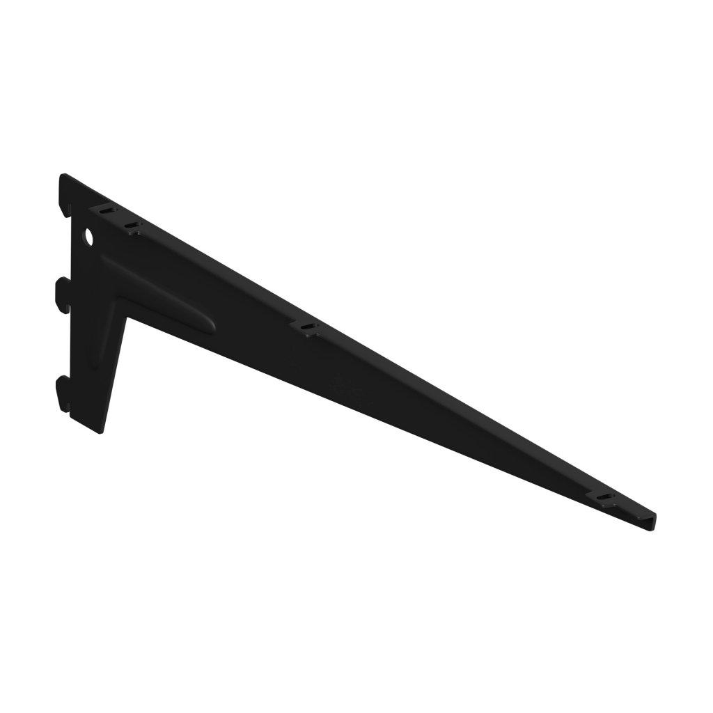 Regálový stranový nosník vhodný k upevnění na jednořadé i dvouřadé nástěnné lišty. Slouží k uchycení dřevěných polic. Nosník je vybaven otvory na vruty, které přichytí polici pevně k nosníku. Levé a pravé provedení nosníku zajistí dokonalé zakončení bočních stran polic.