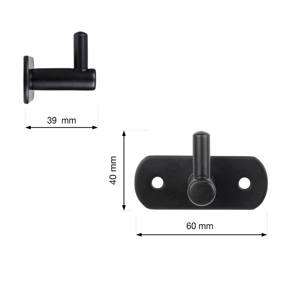 Věšák 60x39x40mm, nerez, černý