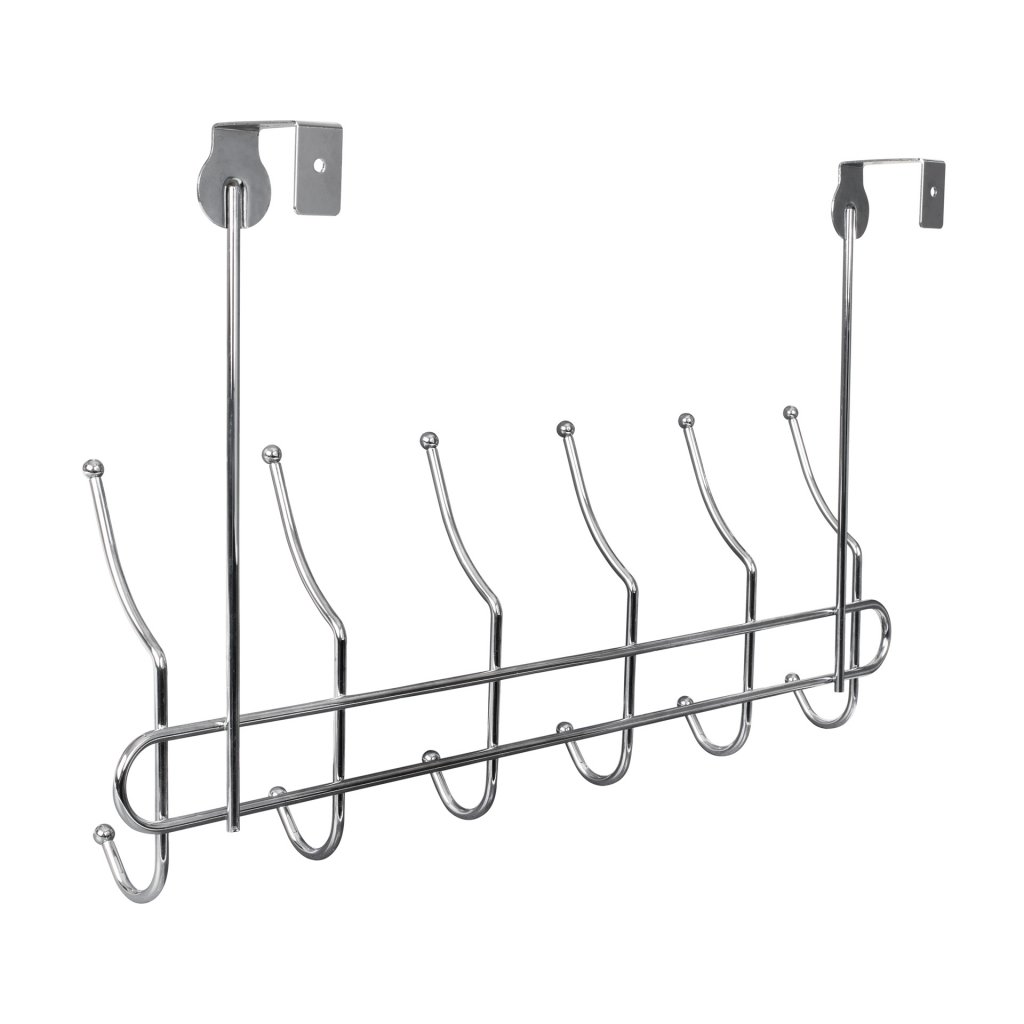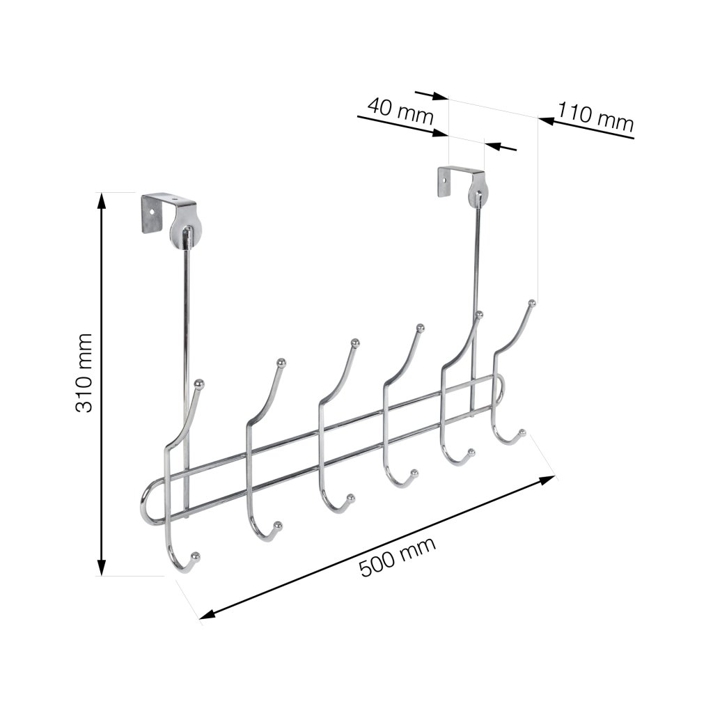 Věšák na dveře, 6 háčků, zavěšení 40mm, chrom
