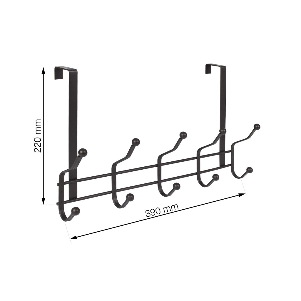 Věšák na dveře 5 háčků, zavěšení 40mm, hnědý antik