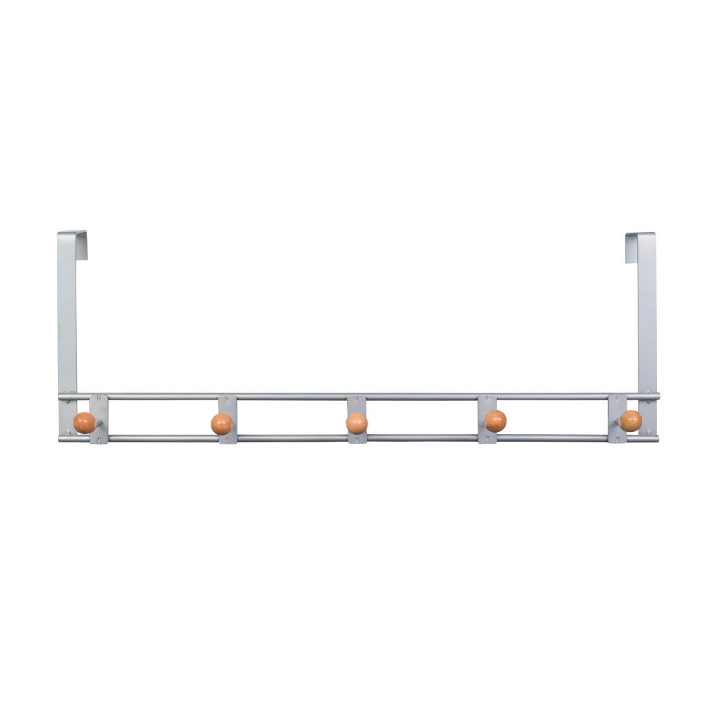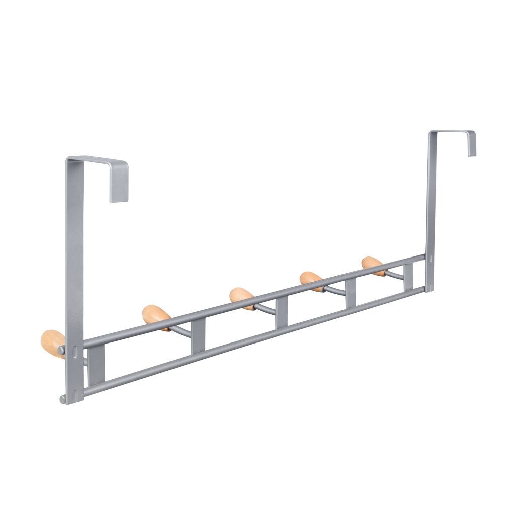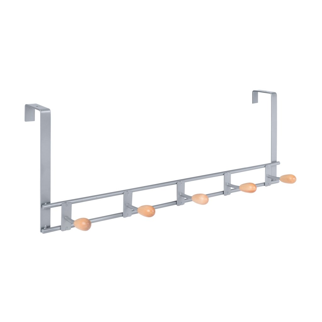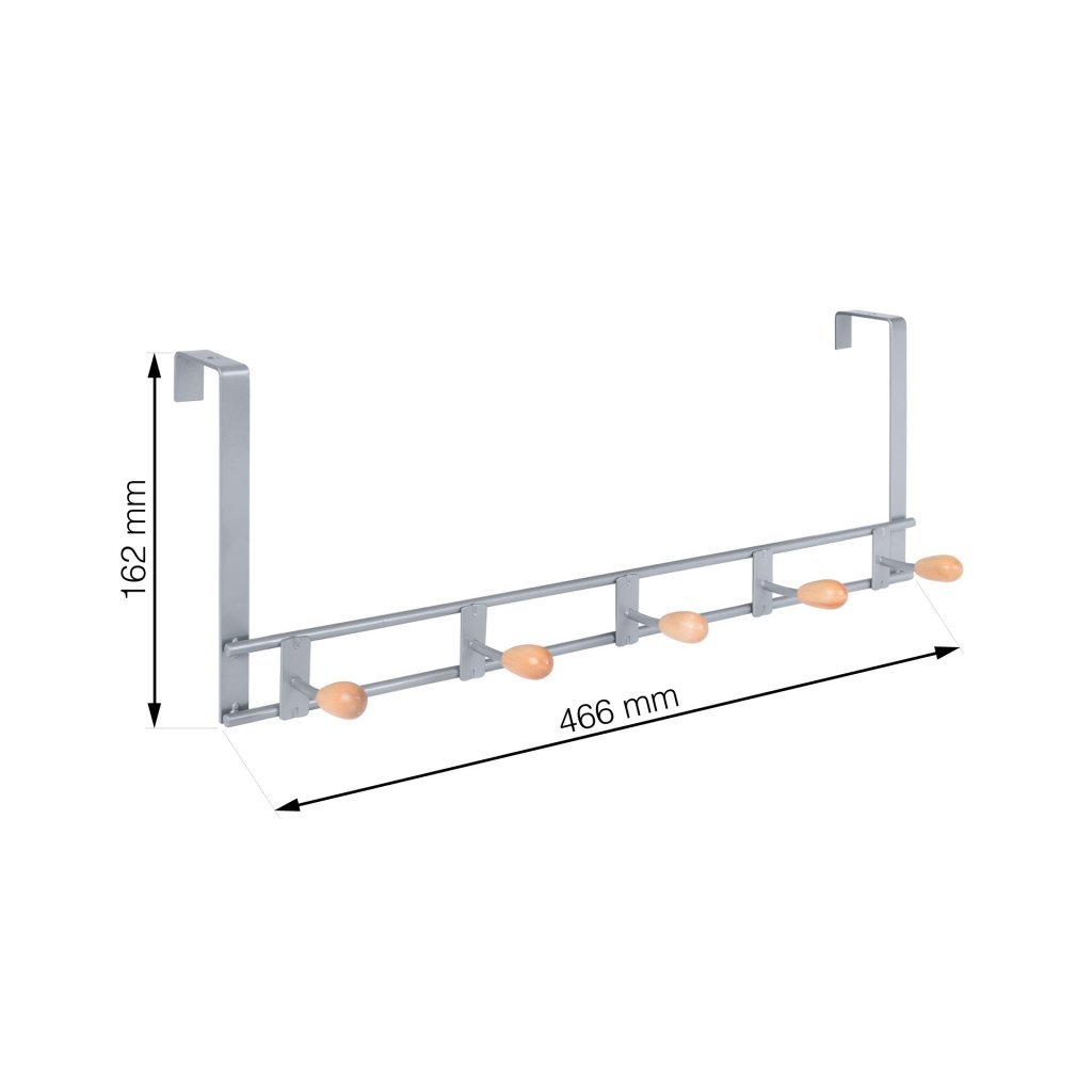 Věšák na dveře 5 háčků, zavěšení 40mm, šedá barva
