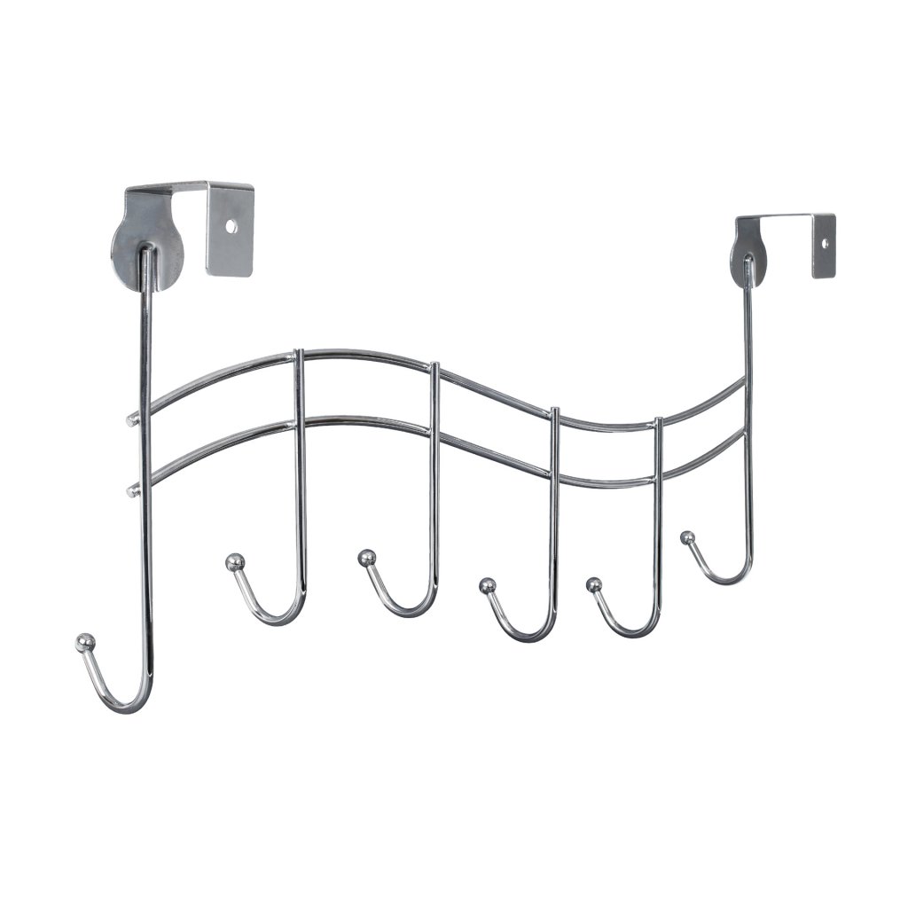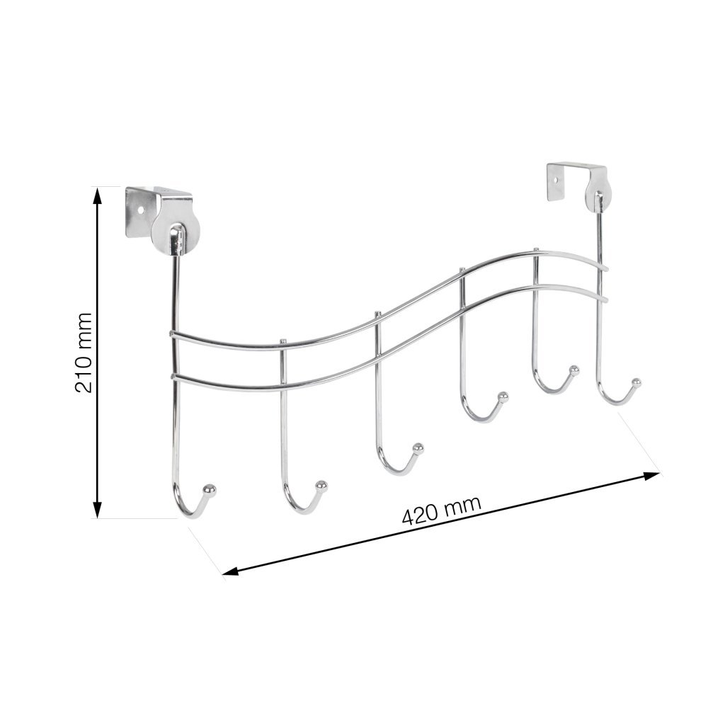 Věšák na dveře Wave, 6 háčků, zavěšení 40mm, chrom