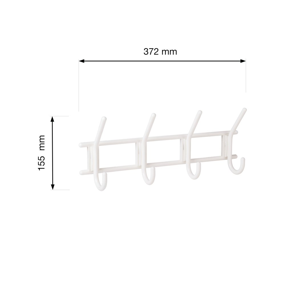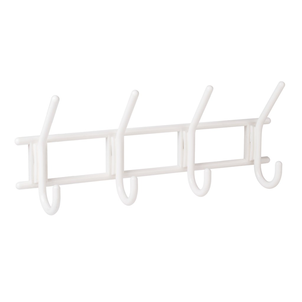 Věšáková lišta, 4 háčky, plast, bílá
