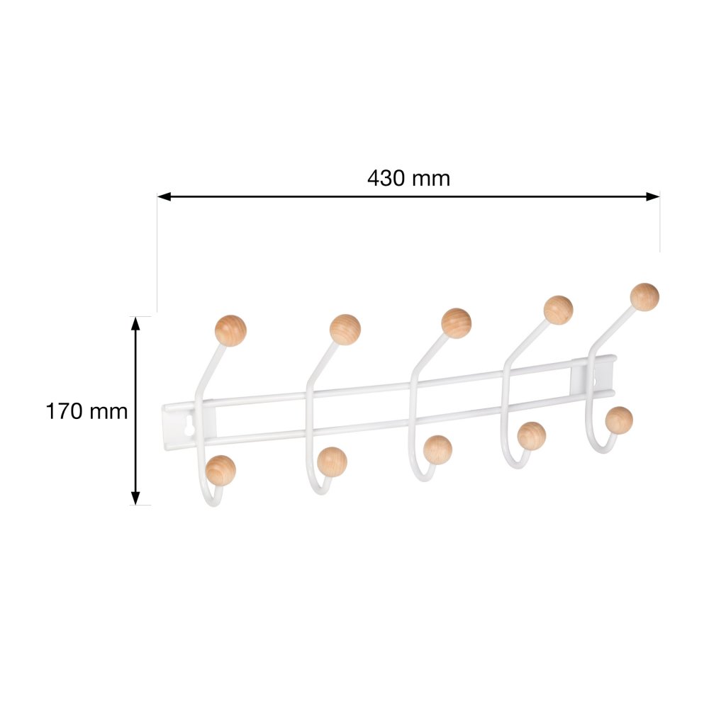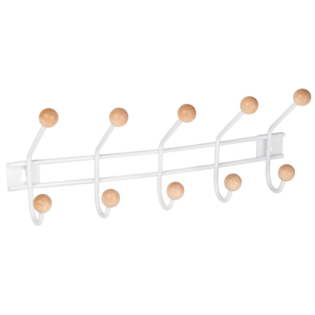 Věšáková lišta, 5 háčků, bílá/dřevo