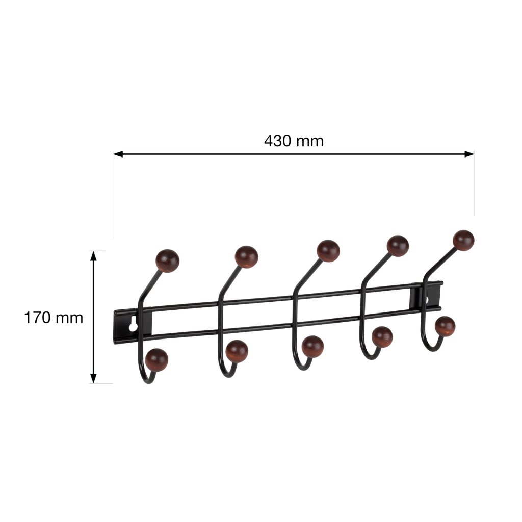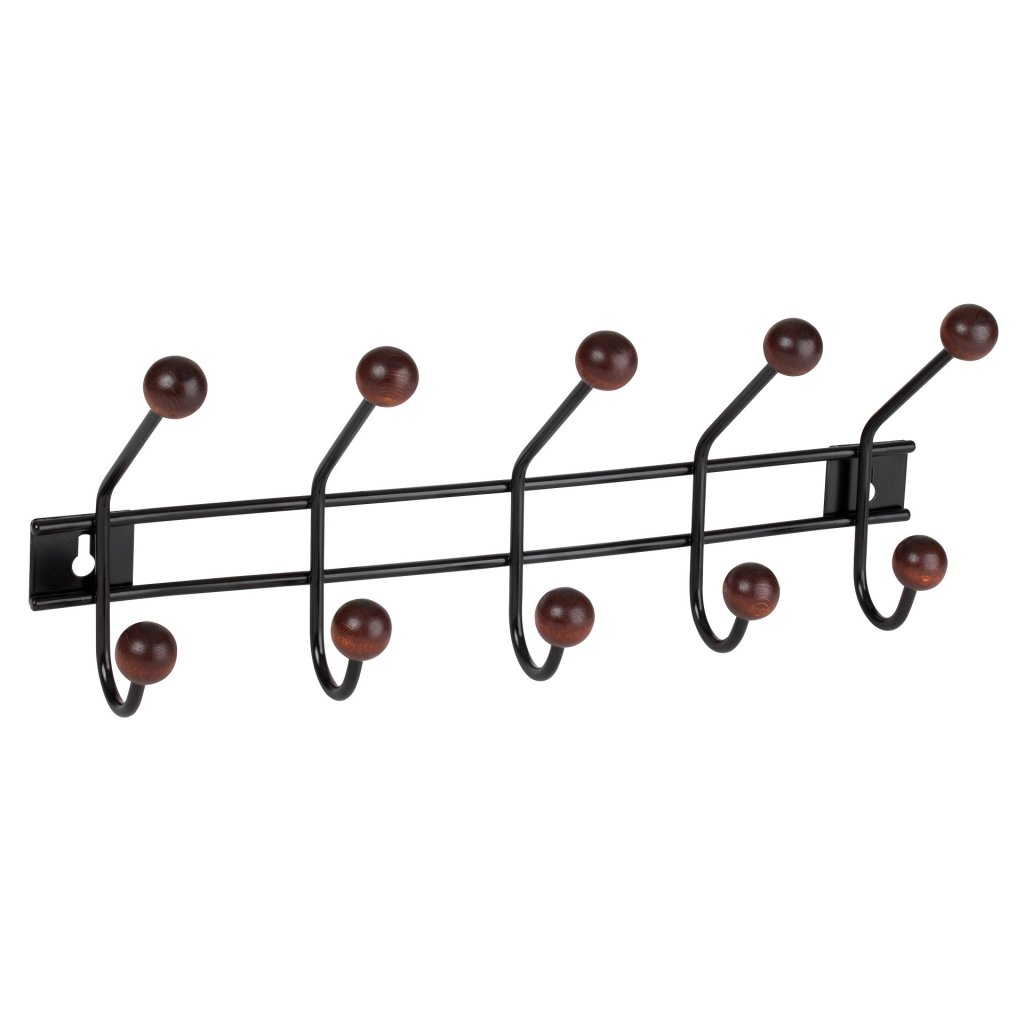 Věšáková lišta, 5 háčků, černá/hnědé dřevo
