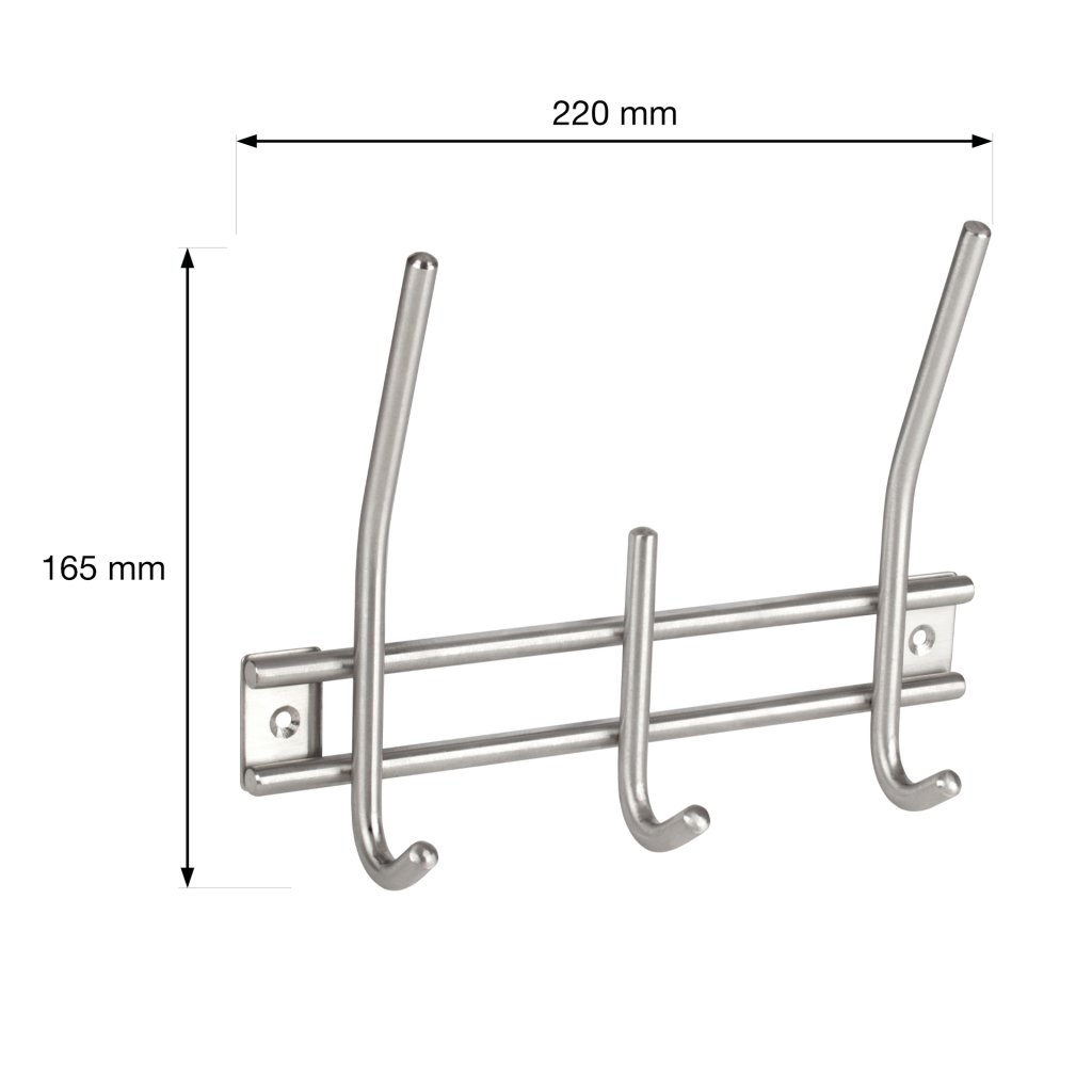 Věšáková lišta 220x165mm, 3 háčky, nerez