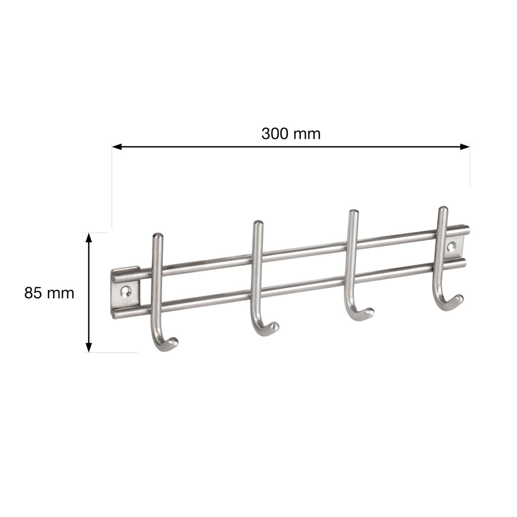 Věšáková lišta 300x85mm, 4 háčky, nerez