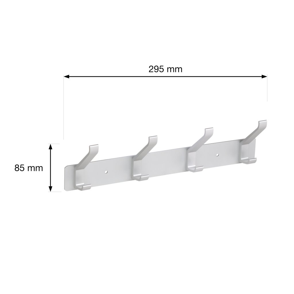 Věšáková lišta 4 háčky, 295mm, aluminium elox