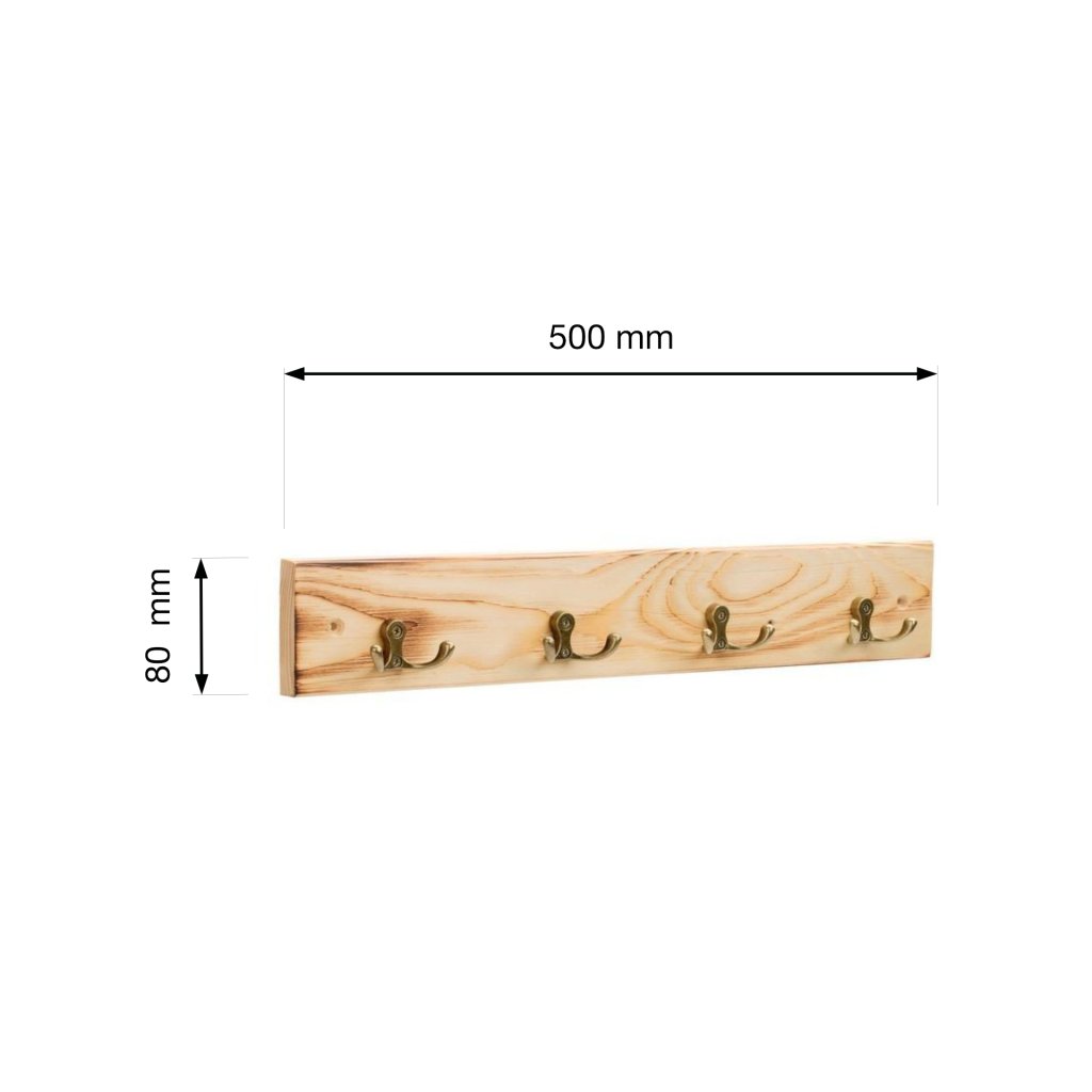 Věšáková lišta 500x80mm, 4 háčky, drásané dřevo, přírodní