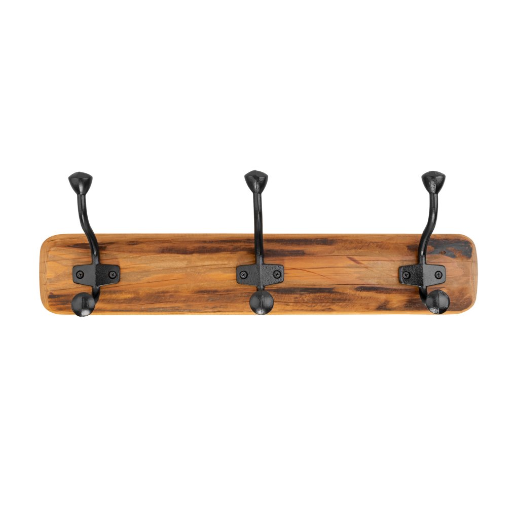 Věšáková lišta 530x160 mm, 3 háčky, recyklovaná borovice, FSC