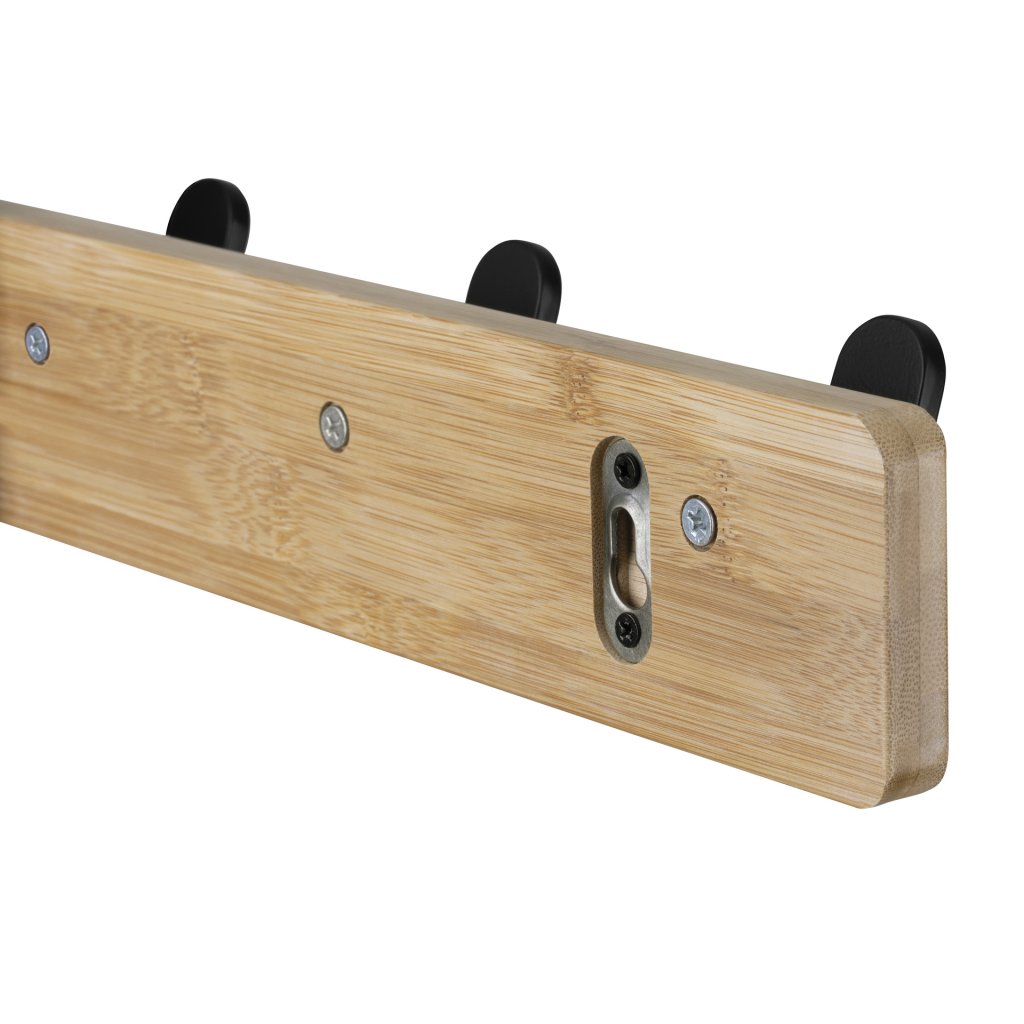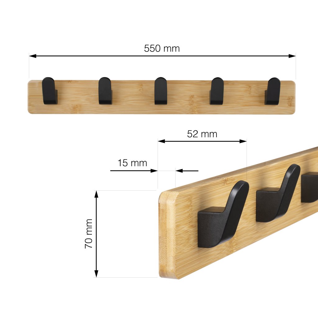 Věšáková lišta 550x70mm, 5 háčků, bambus+matná černá, FSC