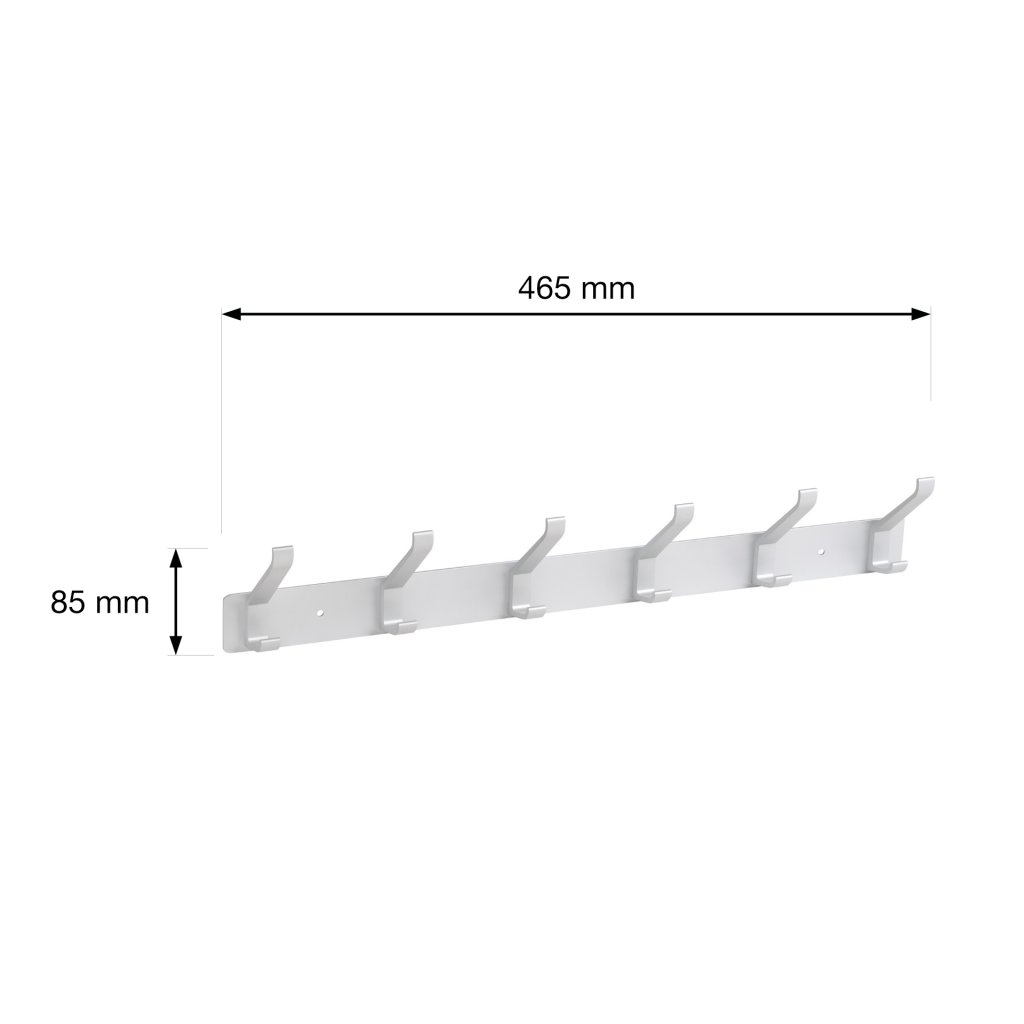 Věšáková lišta 6 háčků, 465m, aluminium elox
