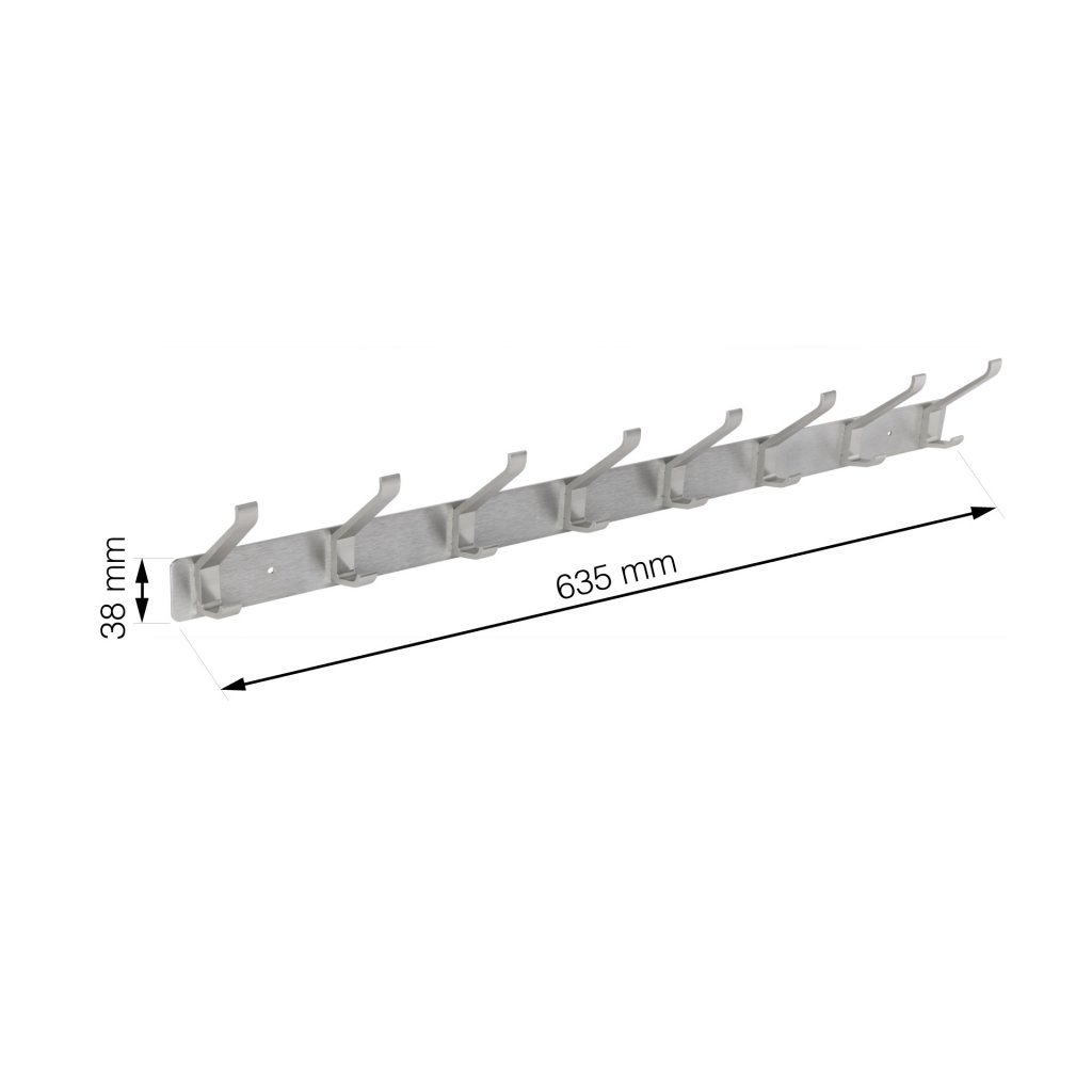 Věšáková lišta 8 háčků, 635mm, aluminium, broušený saténový nikl, 5 ks
