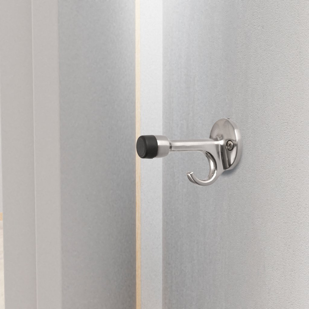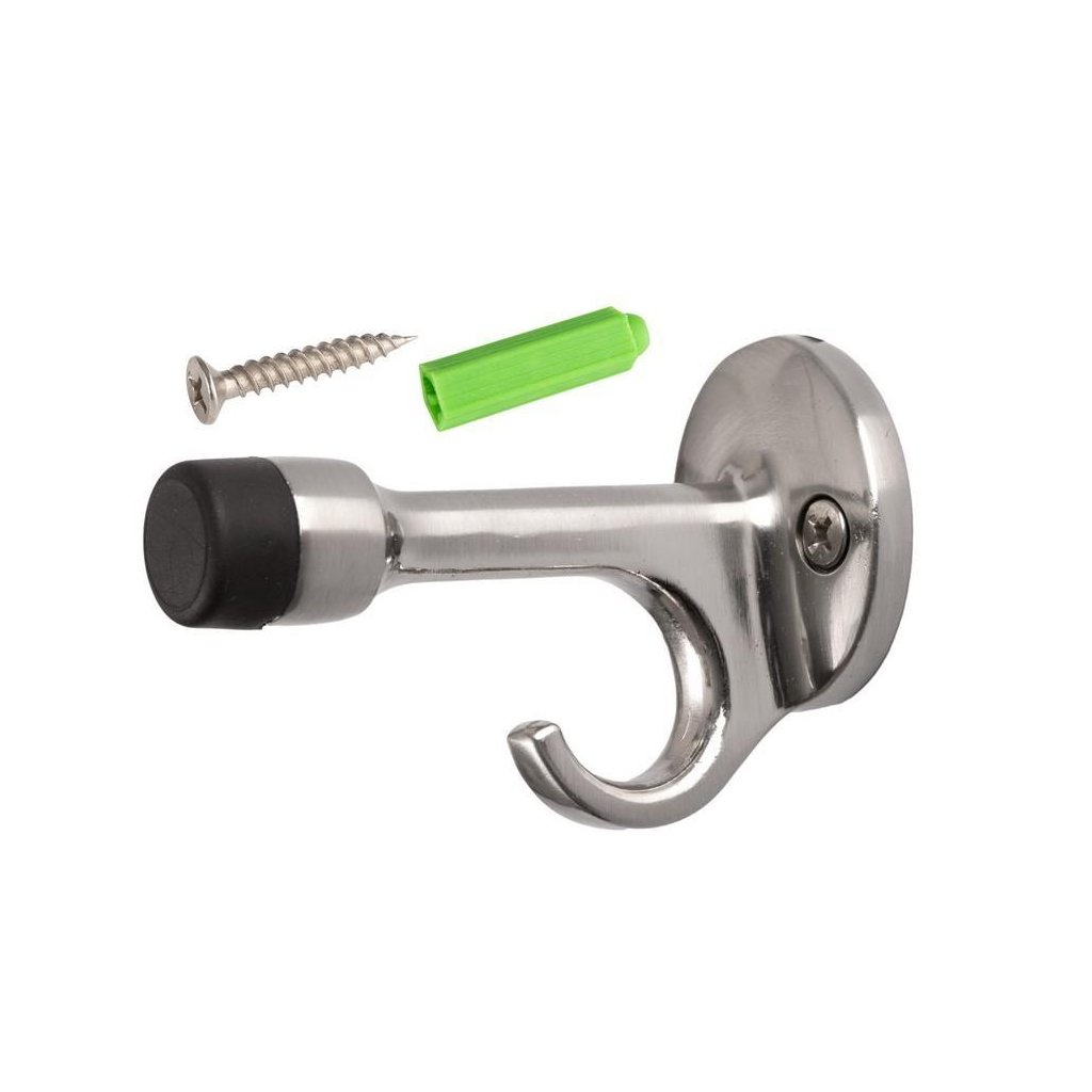 Zarážka na stěnu s háčkem L-80mm, k našroubování, matný nikl