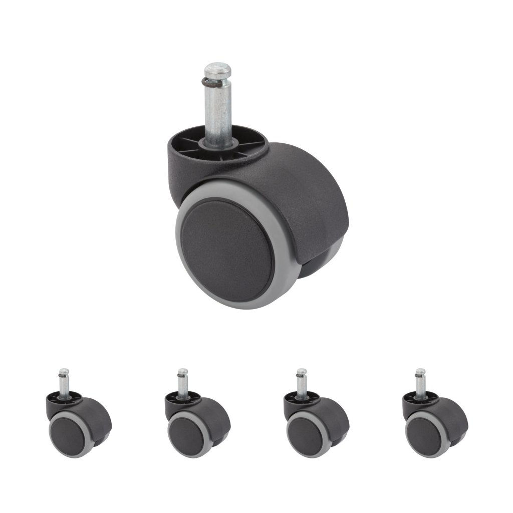 Celoplastové židlové dvojkolečko s čepem o průměru 50 mm s nosností do 50 kg vhodné pro židlová uchycení.